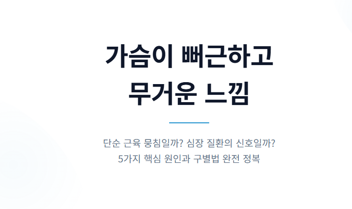 하지만 가슴이 뻐근하다고 모두 심장 질환은 아니랍니다. 오늘은 가슴 뻐근함의 주요 원인 5가지와 구별법을 알아볼게요.