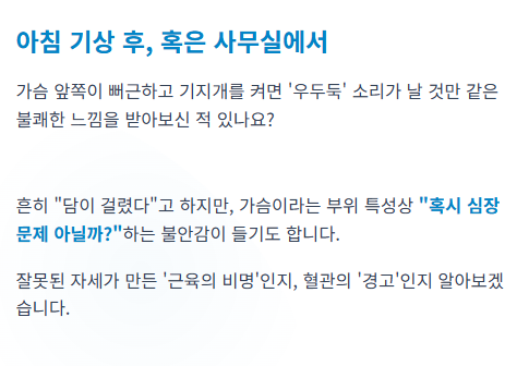 아침에 일어났을 때나 오래 앉아 있다가 몸을 일으킬 때 가슴 앞쪽이 뻐근하고 묵직한 느낌을 받아본 적 있으신가요?