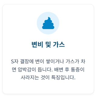 변비나 가스가 정체되면 왼쪽 하복부에 압박이 생겨 통증이 유발될 수 있어요. 대장에서 변이 이동하는 위치가 S자 결장이라 왼쪽 아랫배가 유독 아픈 경우가 많답니다.