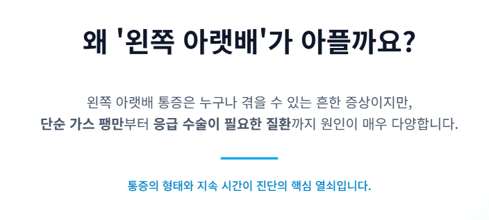 이렇게 다양한 장기가 밀집되어 있기 때문에 왼쪽 아랫배 통증의 원인을 증상만으로 단정하기는 어렵답니다. 통증의 형태, 지속 시간, 동반 증상을 종합적으로 살펴봐야 정확한 원인을 파악할 수 있어요.