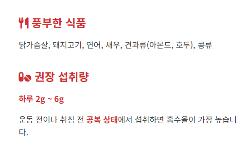 | 운동 30분 전 | 2,000~3,000mg | 근육 펌핑, 운동 능력 향상 |