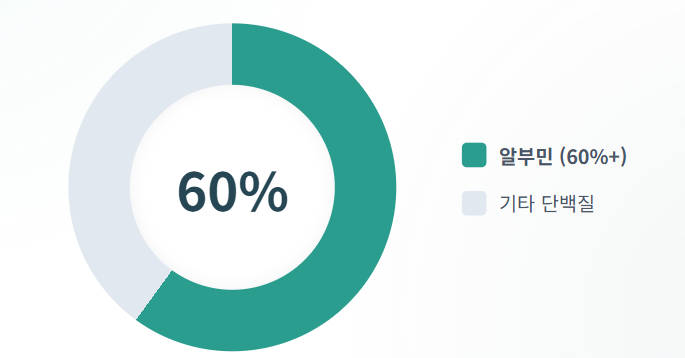 알부민은 간에서 합성되는 혈청 단백질로, 전체 혈청 단백질의 약 60%를 차지하는 핵심 성분이에요. 혈액을 통해 근육, 신장, 간, 위장관 등 다양한 조직으로 이동하면서 영양소와 호르몬을 운반하는 역할을 담당합니다.