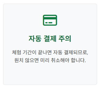 중요한 건, 1개월이 지나기 전에 구독을 취소해야 한다는 거예요. 취소하지 않으면 자동으로 유료 결제가 진행되니까 캘린더에 미리 알림을 설정해두시면 좋아요.