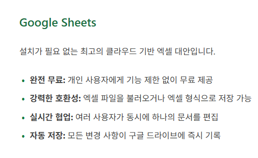 구글 스프레드시트는 구글 계정만 있으면 무료로 사용할 수 있고, 엑셀 파일과 호환도 잘 돼요. 실시간 협업 기능이 특히 강력하답니다.