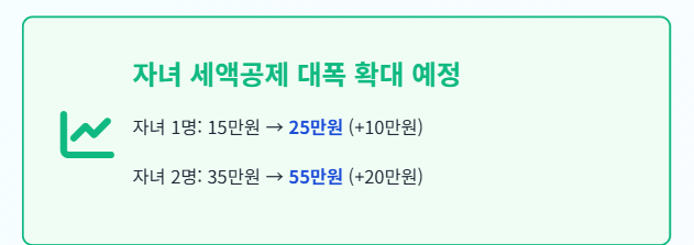 • 자녀 3명 이상: 35만 원에 더해 셋째부터 1명당 30만 원씩 추가 공제됩니다.