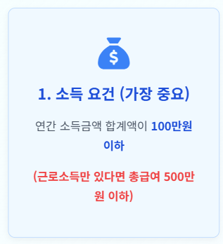 소득 요건: 연간 100만원 이하의 엄격한 기준