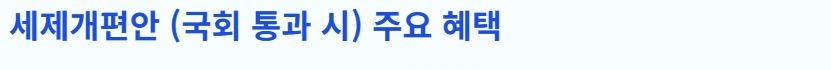 • 결혼 세액공제: 2024년부터 2026년까지 혼인신고를 한 거주자는 생애 1회, 1인당 50만 원 (부부 합산 최대 100만 원)의 세액공제를 받을 수 있습니다.