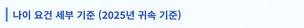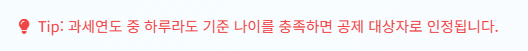 부양가족의 나이 요건은 가족 관계에 따라 달리 적용되며, 과세기간의 12월 31일 기준 나이를 충족해야 합니다. 단, 해당 과세연도 중에 하루라도 기준 나이를 충족하면 공제 대상자로 인정됩니다.