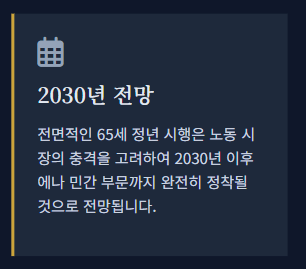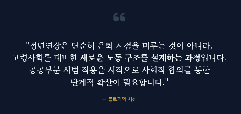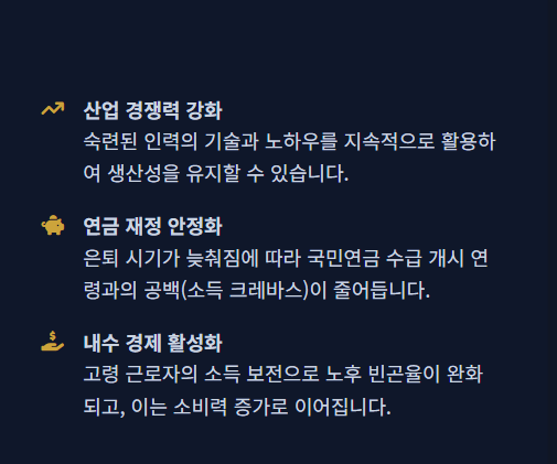 2025년 내에 법안이 통과되면 2027년부터 본격적으로 시작되는 거예요. 국민연금 수급 연령이 2033년부터 65세가 되는 것과 맞춰서 정년도 같이 65세로 연장하는 구조랍니다.