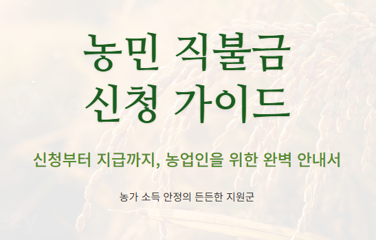 하지만 "신청 기간을 놓치면 어떡하지?", "내가 자격이 되는 걸까?" 하는 고민이 드실 텐데요. 오늘은 2025년 직불금 지급시기부터 신청자격, 신청방법까지 누구나 쉽게 이해할 수 있도록 명확하게 정리해드릴게요.