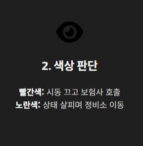 경고등은 신호등과 같은 원리로 색상에 따라 위험도가 다릅니다. 이 원칙만 기억하면 수많은 경고등의 모양을 모두 외울 필요가 없습니다.
