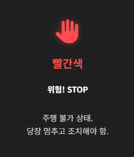 빨간색은 가장 위험한 신호입니다. 엔진, 브레이크 등 차량 운행에 필수적인 핵심 장치에 치명적인 문제가 생겼음을 의미합니다. 빨간색 경고등이 켜지면 무리하게 주행을 이어가지 말고, 즉시 안전한 장소에 차를 세우고 시동을 꺼야 합니다. 대부분의 경우 견인 조치가 필요합니다.