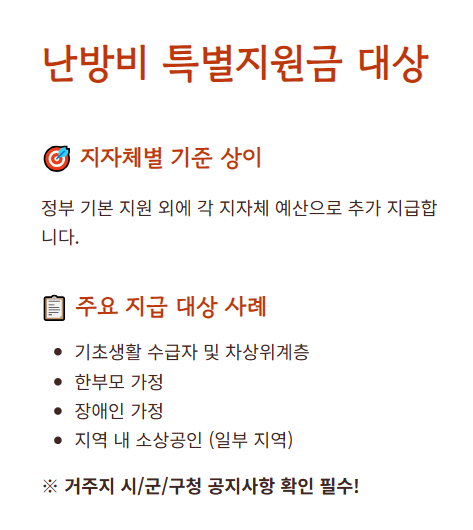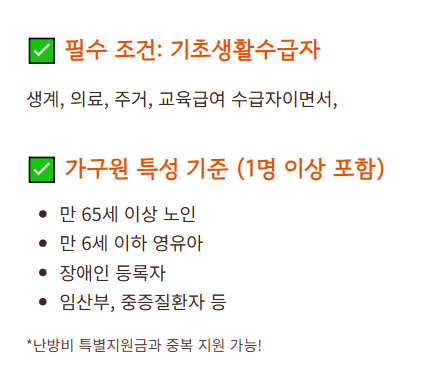 난방지원금은 소득 수준, 가구 형태, 기초생활보장 수급 여부에 따라 결정돼요. 본인이 해당되는지 꼼꼼히 확인해보세요.