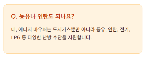 맞습니다. 에너지바우처는 도시가스뿐만 아니라 연탄, 등유, 전기 등 다양한 난방 수단에 적용됩니다.