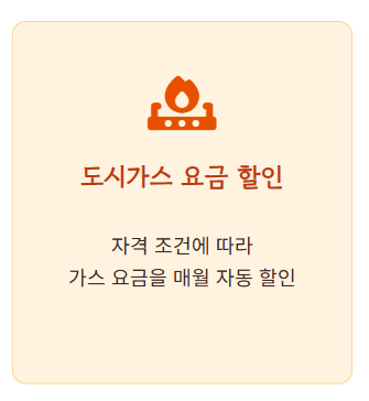 • 도시가스 요금 할인: 자격 조건에 따라 자동 또는 신청 후 월 최대 2만원 할인