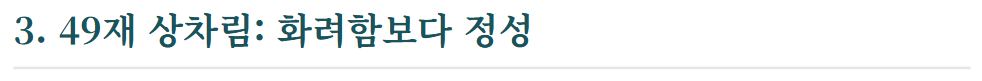| 나물 | 3색 나물 (도라지, 고사리, 시금치 등 계절 나물) |